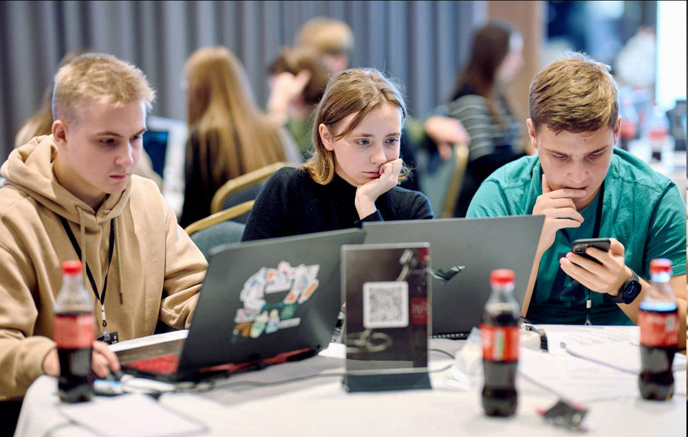 В столиці України відбувся Всеукраїнський хакатон "Безпечне майбутнє: концепція VR/AR-тренажера для підготовки саперів", організований Міністерством економіки, довкілля та сільського господарства України спільно з національною платформою Demine Ukraine, Центром гуманітарного розмінування та КПІ ім. Ігоря Сікорського за підтримки групи компаній "Універмаг освіти". Мета хакатону – створити інноваційні освітні рішення для підготовки фахівців з гуманітарного розмінування, використовуючи технології VR/AR, UX/UI-дизайн та симуляційне навчання. Хакатон зібрав близько 40 студентів із вишів України, з яких було сформовано 10 команд. Команда КПІ ім. Ігоря Сікорського Virtual Deminers, до складу якої входили студенти Назар Матвієнко з НН ІТС, Владислав Шеін з НН ММІ та Софія Баннікова з ФСП (на фото), виборола друге місце серед учасників з усієї України.