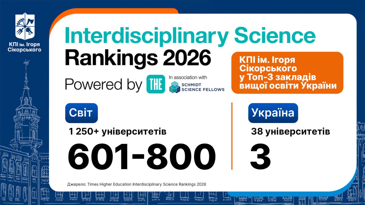In the annual THE Interdisciplinary Science Rankings 2026, which evaluates universities for their ability to develop interdisciplinary scientific fields, Igor Sikorsky KPI is once again among the leaders in Ukraine.