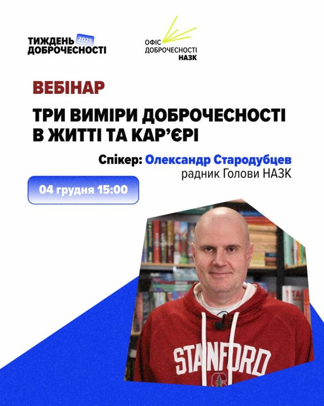 НАЗК підготували подію, яка допоможе по-новому поглянути на роль доброчесності в особистому та професійному житті – вебінар «Три виміри доброчесності в житті та кар’єрі».