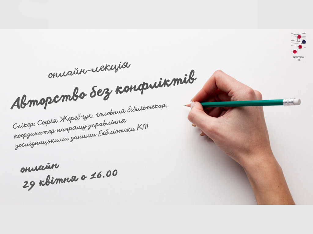 Бібліотека КПІ запрошує дослідників КПІ ім. Ігоря Сікорського та усіх охочих долучитися до онлайн лекції “Авторство без конфліктів”, що відбудеться в межах курсу відкритих лекцій “Академічна ДоброЧесність: правила гри чи справа честі”.